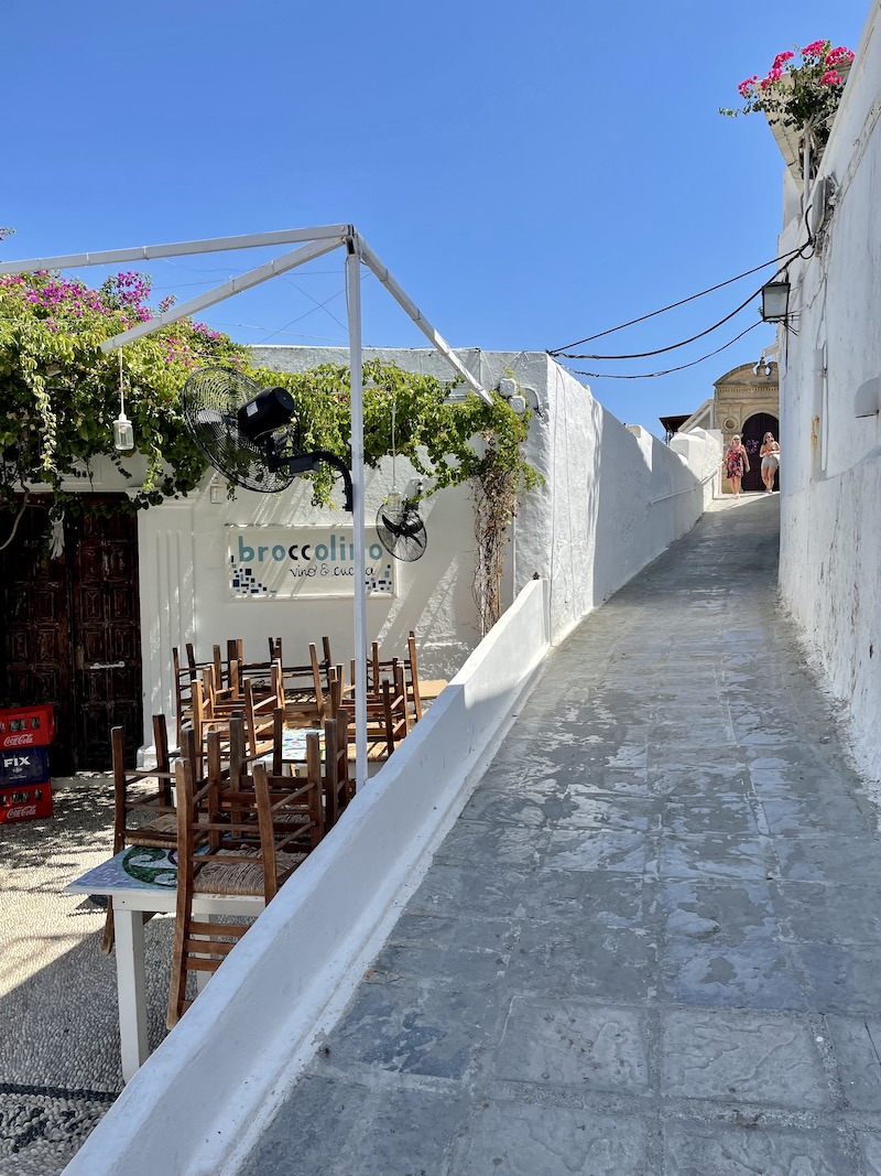 Prócz pięknego widoku na morze miasteczko ma do zaoferowania cudowny klimat małej miejscowości. Można zabłądzić w wąskich uliczkach i pomiędzy białymi domkami odpocząć z licznych restauracji. Chcieliśmy zjeść obiad w miejscu, w którym dwanaście lat temu pewien Włoch uraczył nas cudownym makaronem. Niestety było zamknięte.