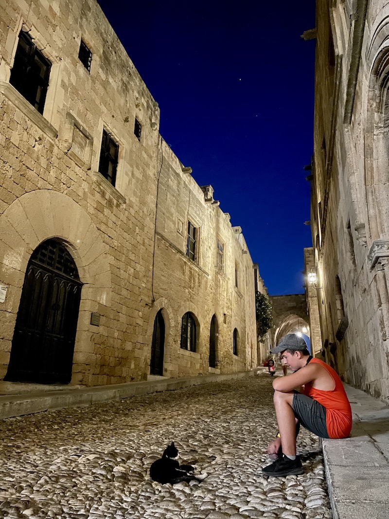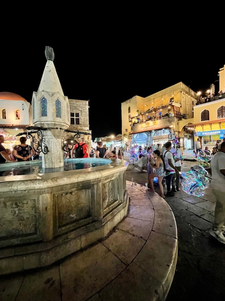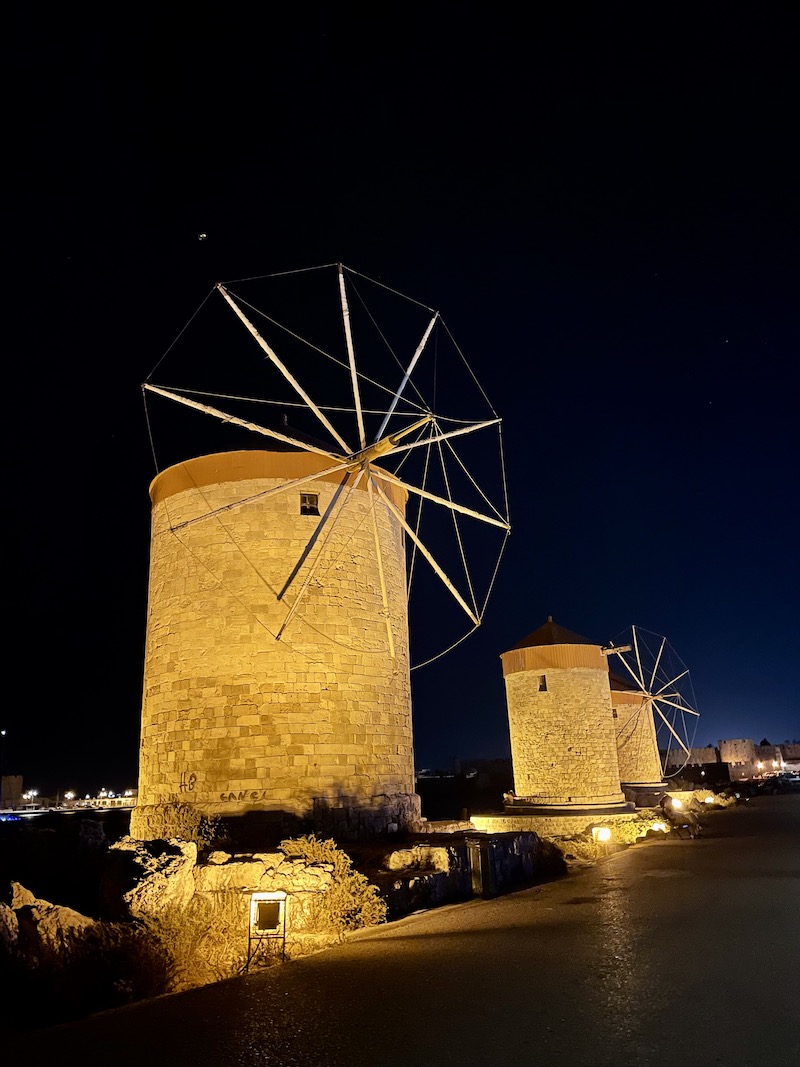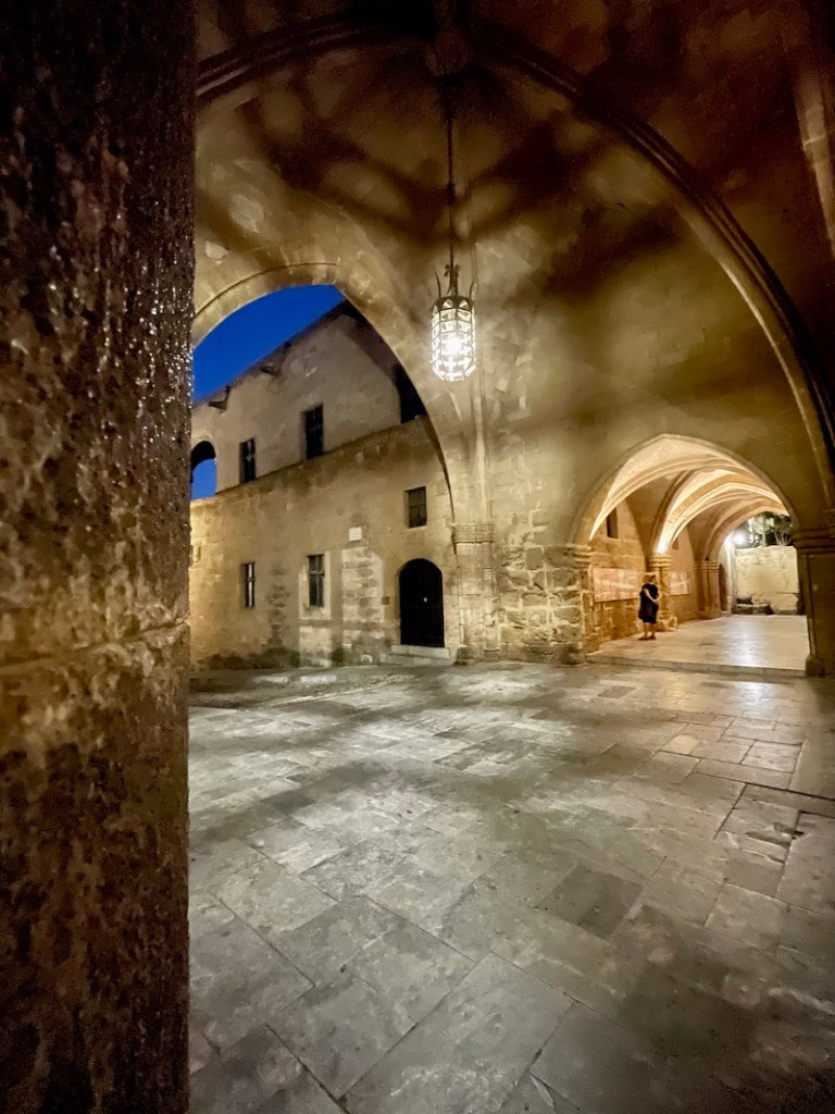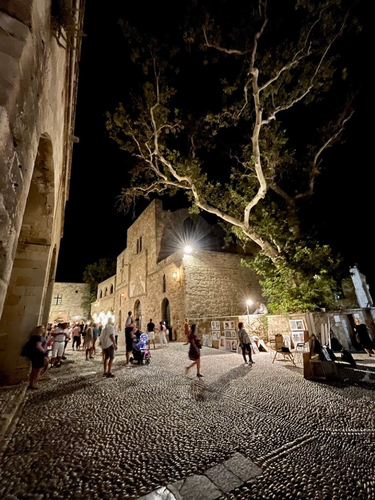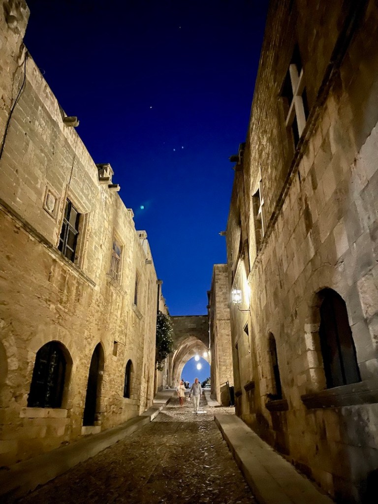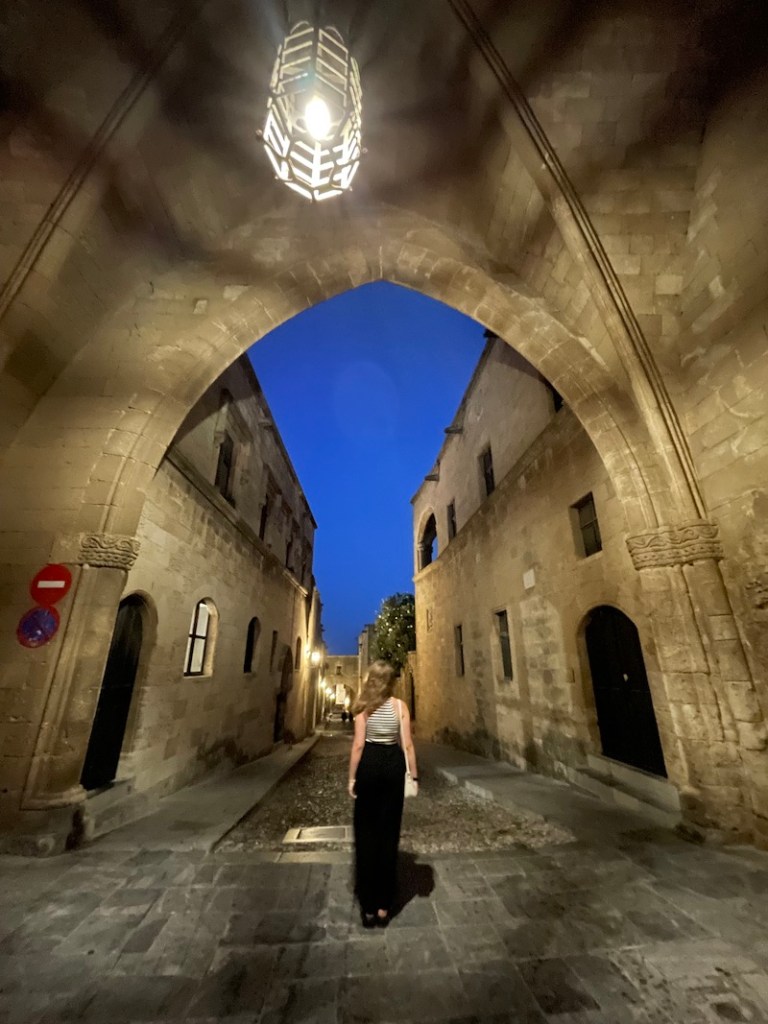 Pamiętając jak gorąco jest latem w mieście Rodos, postanowiliśmy, że zwiedzanie miasta pozostawimy sobie na noc. To na prawdę jest dobre rozwiązanie. Pewnie zupełnie inaczej to wygląda gdy wakacje planuje się w maju. Sierpień przyniósł nam niestety zbyt dużo ciepła i tłumy turystów. Na szczęście spacer w blasku latarni może nie jest dobrym pomysłem jeśli bierze się pod uwagę zdjęcia miasta, ale przynosi ulgę gdy chce się odpocząć od słońca.