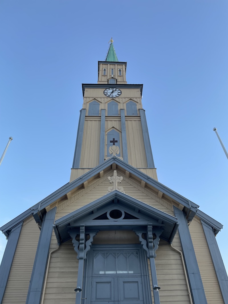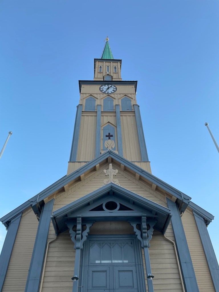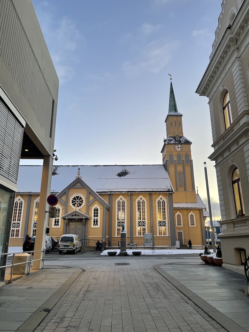 Katedra w Tromsø. Neogotycka, XIX wieczna katedra mieści się w centrum Tromsø. Jest jedyną w Norwegii katedrą wybudowaną w całości z drewna.