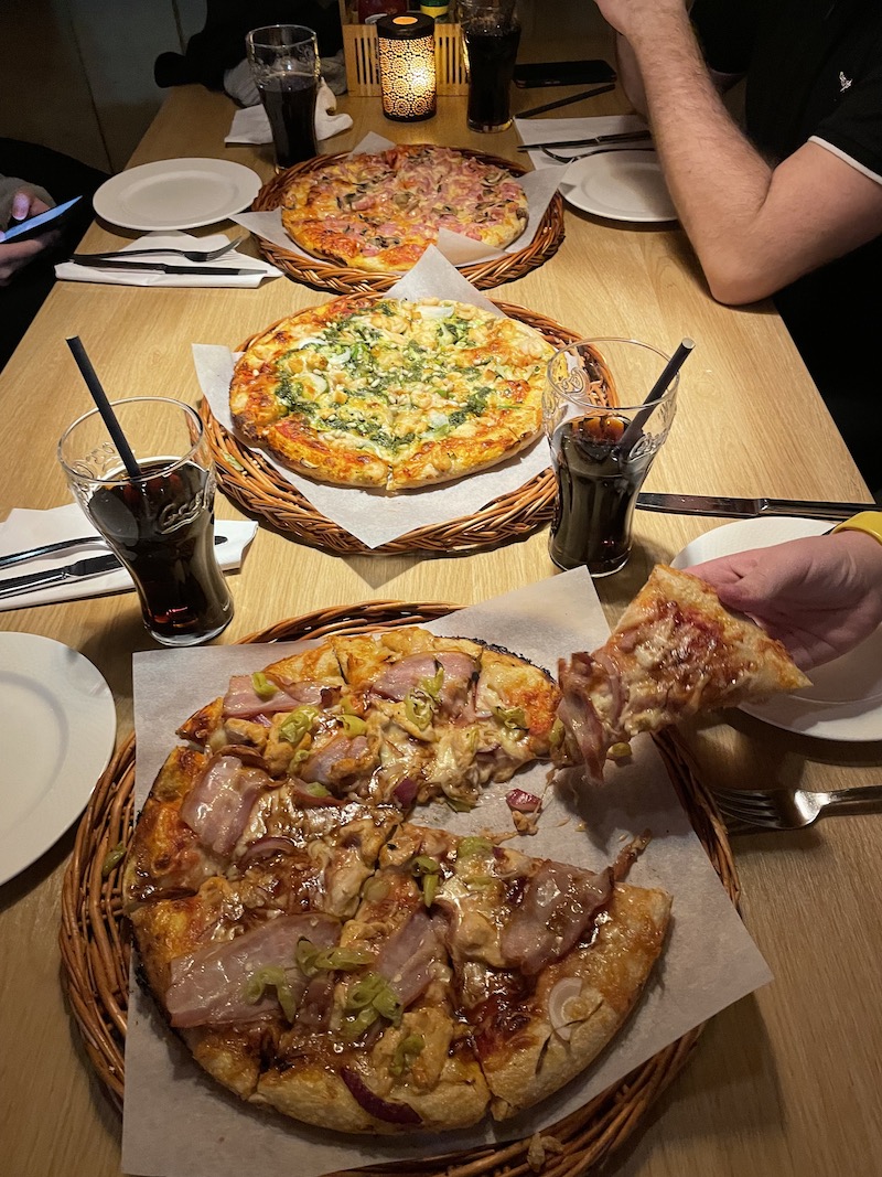 Yonas. Pizzeria przy Hotelu Radisson Blue. Serwuje wiele rodzajów pizzy a ta z łososiem jest wybitnie sycąca.