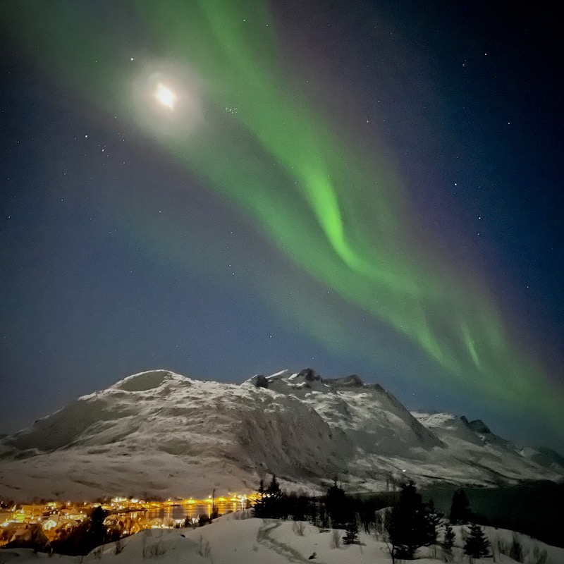Najlepszym miejscem do obserwacji zorzy polarnej w Tromsø jest fjord Ersfjordbotn. Położony zaledwie 15 km od centrum Tromsø. To miejsce obfotografowane jest chyba przez wszystkich lokalnych fotografów a najpiękniejsze zdjęcia okolicy z zorzą w tle pochodzą właśnie stąd.