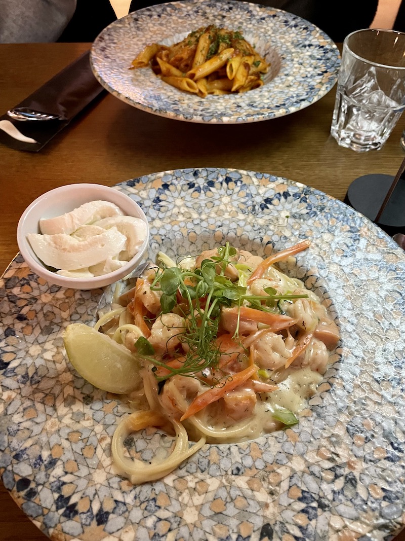 Pastafabrikken. Miejsce gdzie można zjeść przepyszne makarony z owocami morza i nie tylko. Świetnym pomysłem jest możliwość dokonania zamówienia przez aplikację siedząc już wygodnie w fotelu. Niesamowite smaki, klimatyczne miejsce.