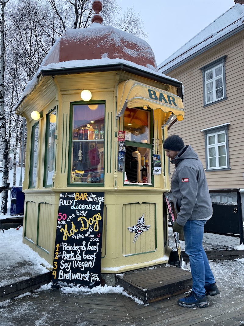 Raketten Bar & Pølse. Jeśli na hot-doga to tylko tutaj a grzańca do kompletu. Kultowa budka kusi zapachami i paleniskiem tuż obok, przy którym można się ogrzać w zimowe dni. Zamówienie hot-doga z kiełbaską z mięsa renifera jest punktem obowiązkowym.