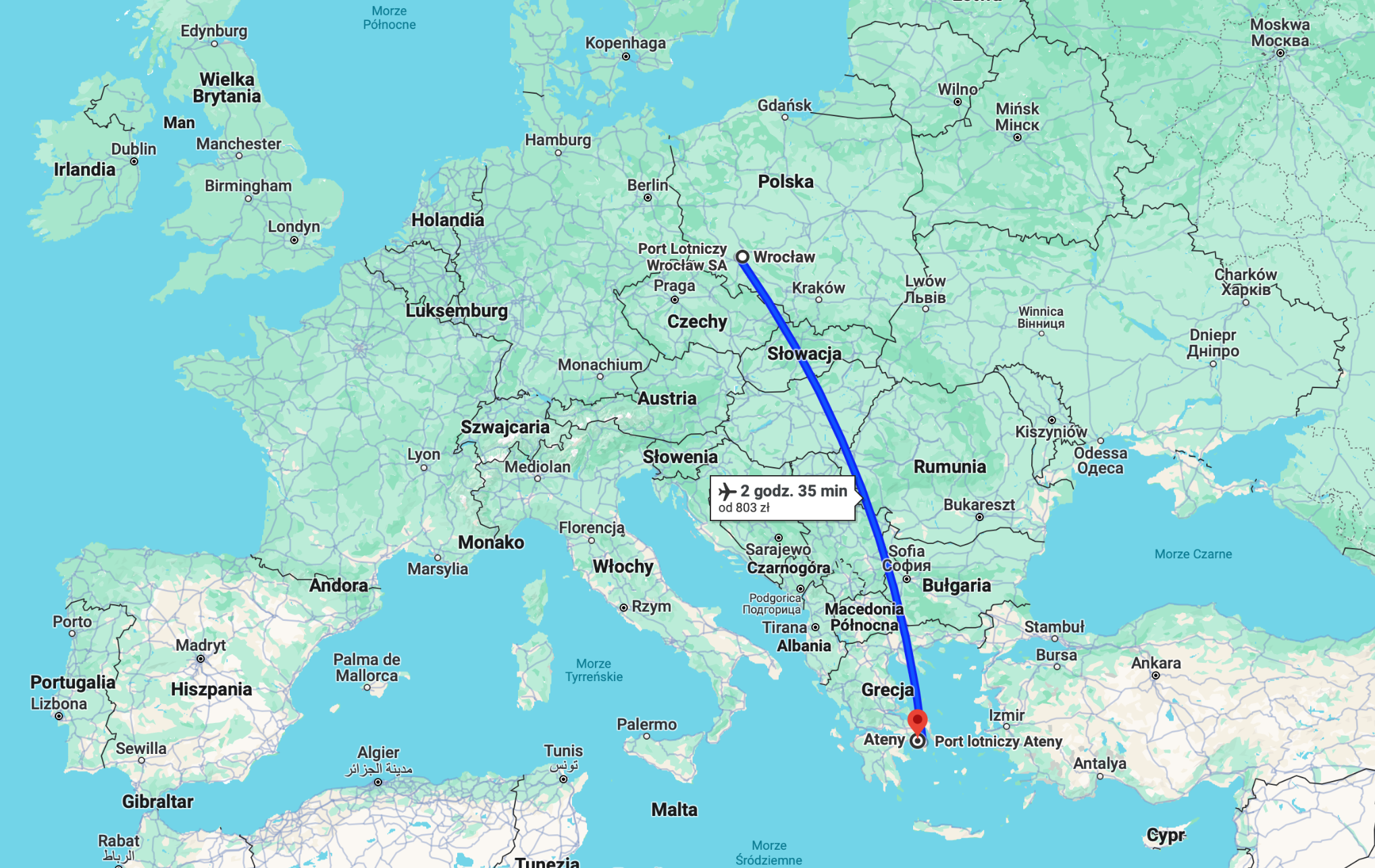 Najtańszą opcją było dla nas wykupienie lotu z Wrocławia do Aten. Przy trafieniu dobrej okazji lot dla jednej dorosłej osoby można znaleźć już za około 160 zł ( korzystając tylko z bagażu podręcznego). Najczęściej jednak trzeba liczyć się z wydatkiem ok 300 zł w jedną stronę korzystając z linii Ryanair.
