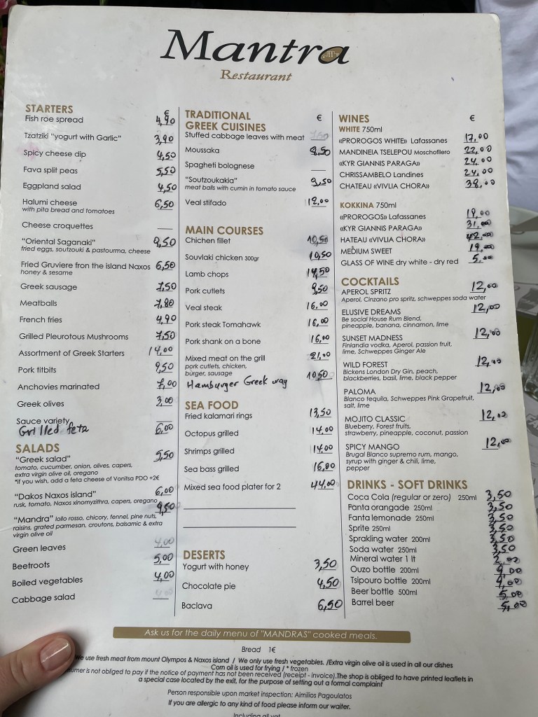- Mantra – świetnie przyrządzone steki, musaka i owoce morza to zalety tego miejsca. Cenowo jak widać na menu, ale jedzenie rewelacyjne.