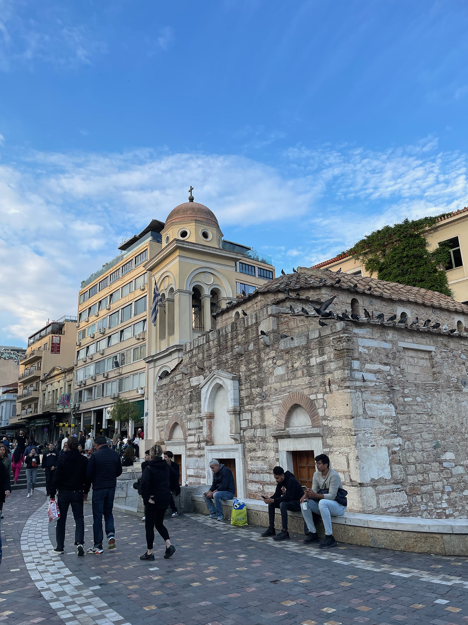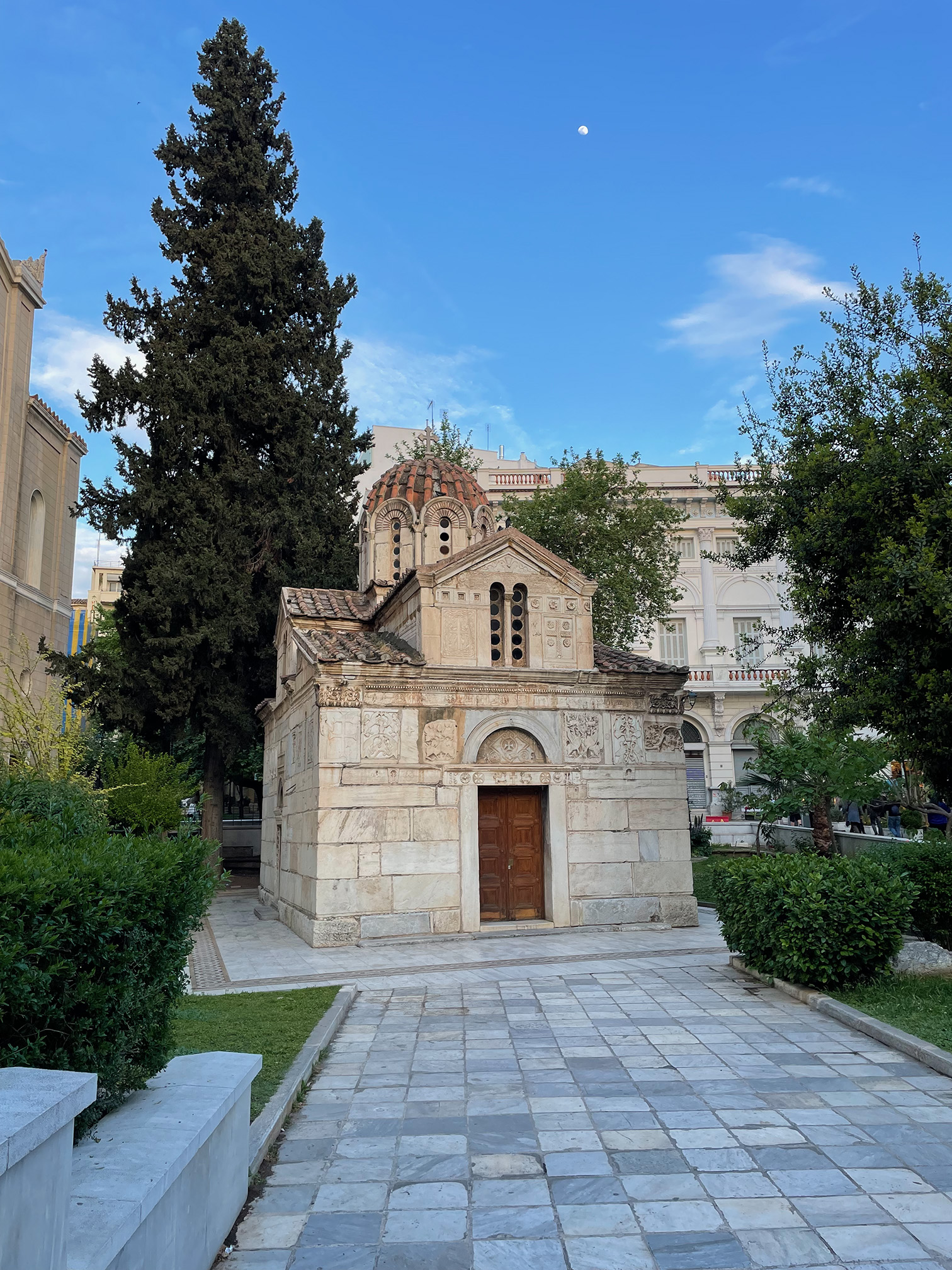 Na Placu Monastiraki na popularnym deptaku znajduje się Panaghia Kapnikaréa, kościół powstały w XI wieku , wybudowany na miejscu po starej świątyni wzniesionej prawdopodobnie dla Ateny lub Demeter.