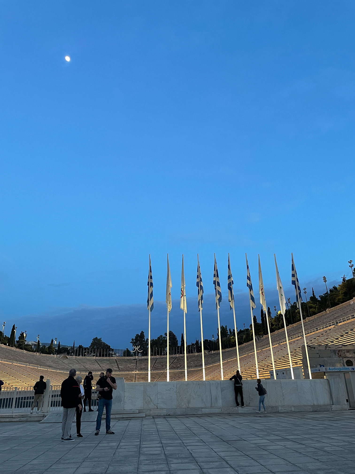Jedno z najbardziej rozpoznawalnych budowli w Atenach. Znajduje się między wzgórzami Agra i Ardettos nad rzeką Ilisos. Zbudowano go z marmuru w 330-329 r p.n.e. na igrzyska Panateńskie. Jego wymiary to 204,7 metrów długości i 33,35 metrów szerokości, pomieścić mógł do 80 000 widzów. Do tej pory stadion jest wykorzystywany i jest miejscem ważnych wydarzeń kulturalnych.