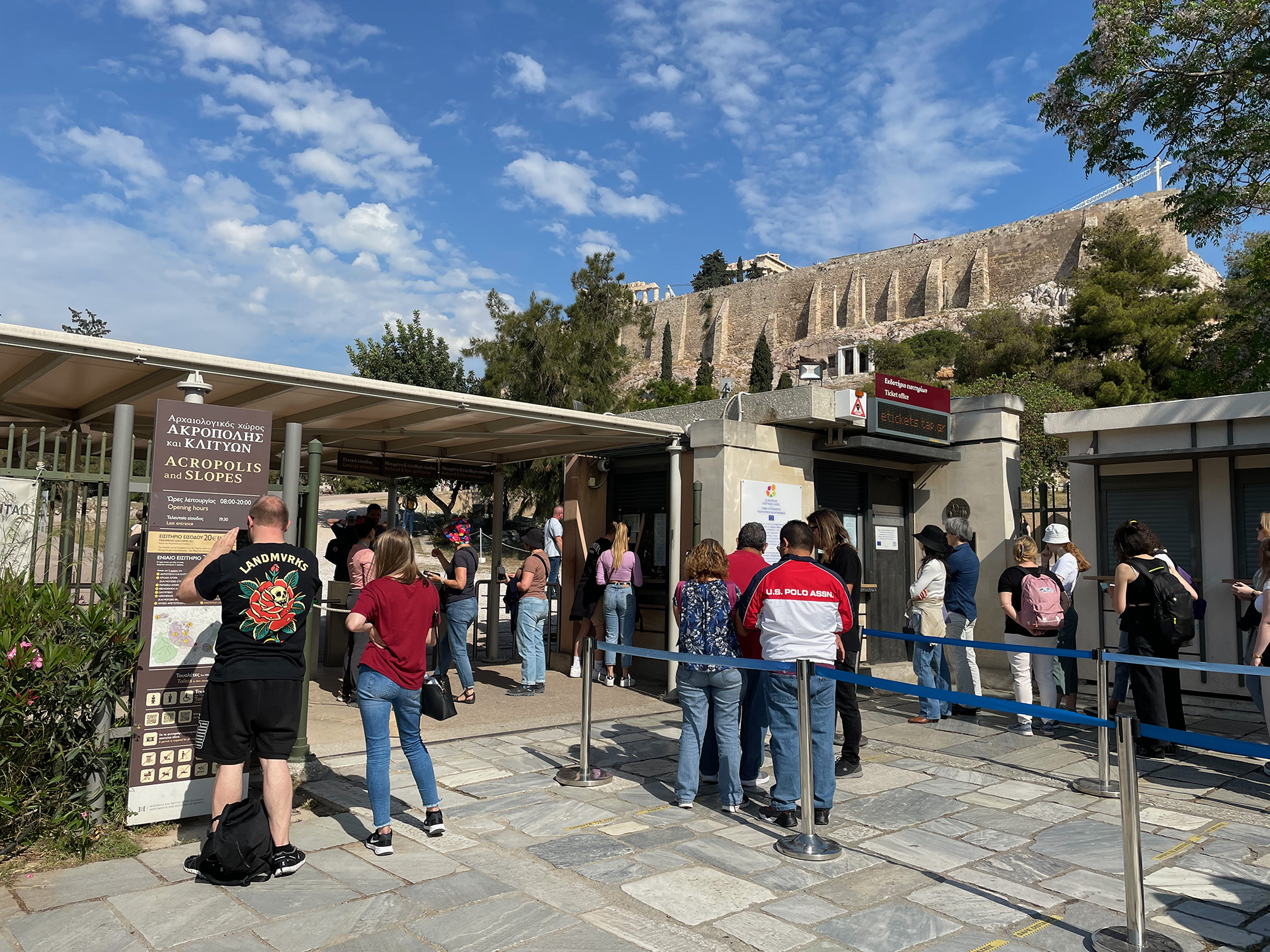 Wejście na Akropol jest płatne. Turyści ustawiają się w kolejce do okienka biletowego choć jak zwykle można wykupić bilet przez internet i wówczas wchodzi się lewą stroną praktycznie od razu.