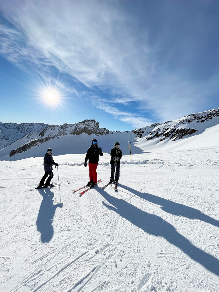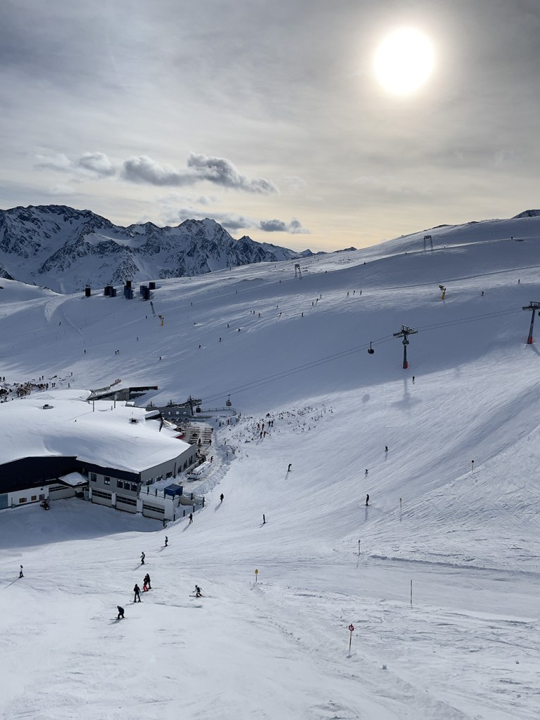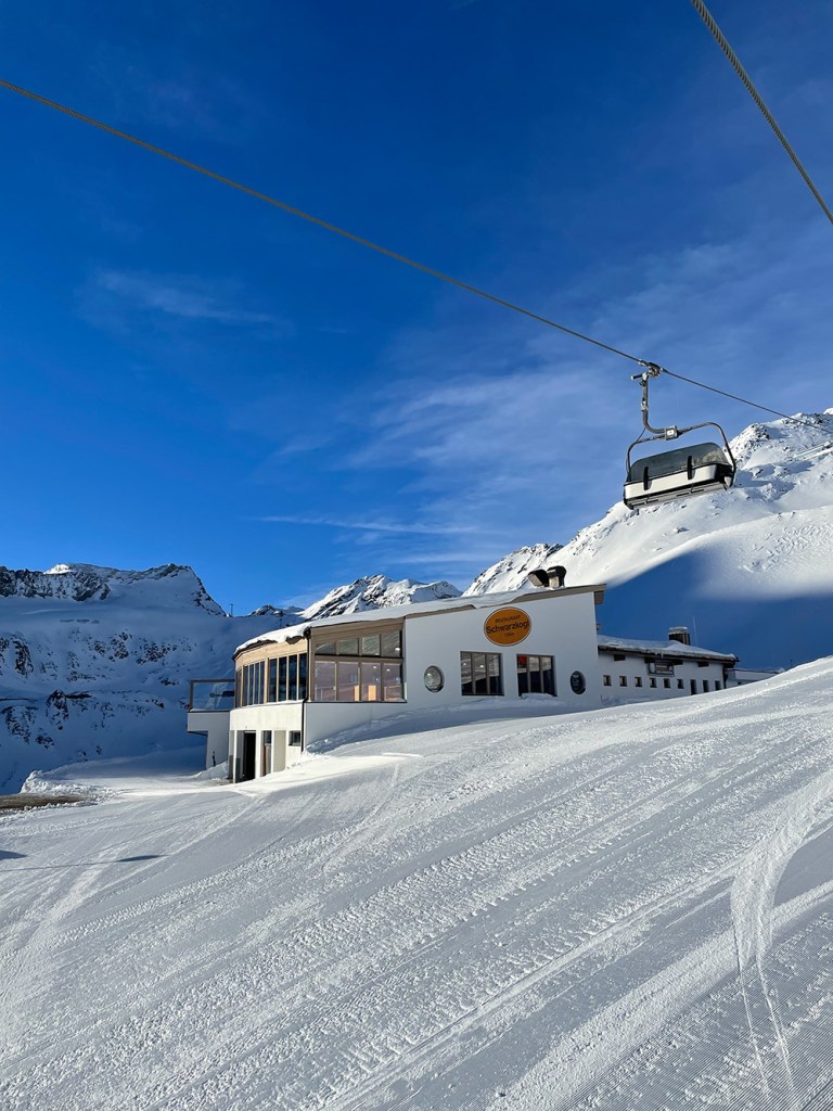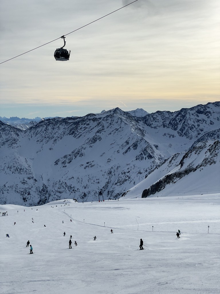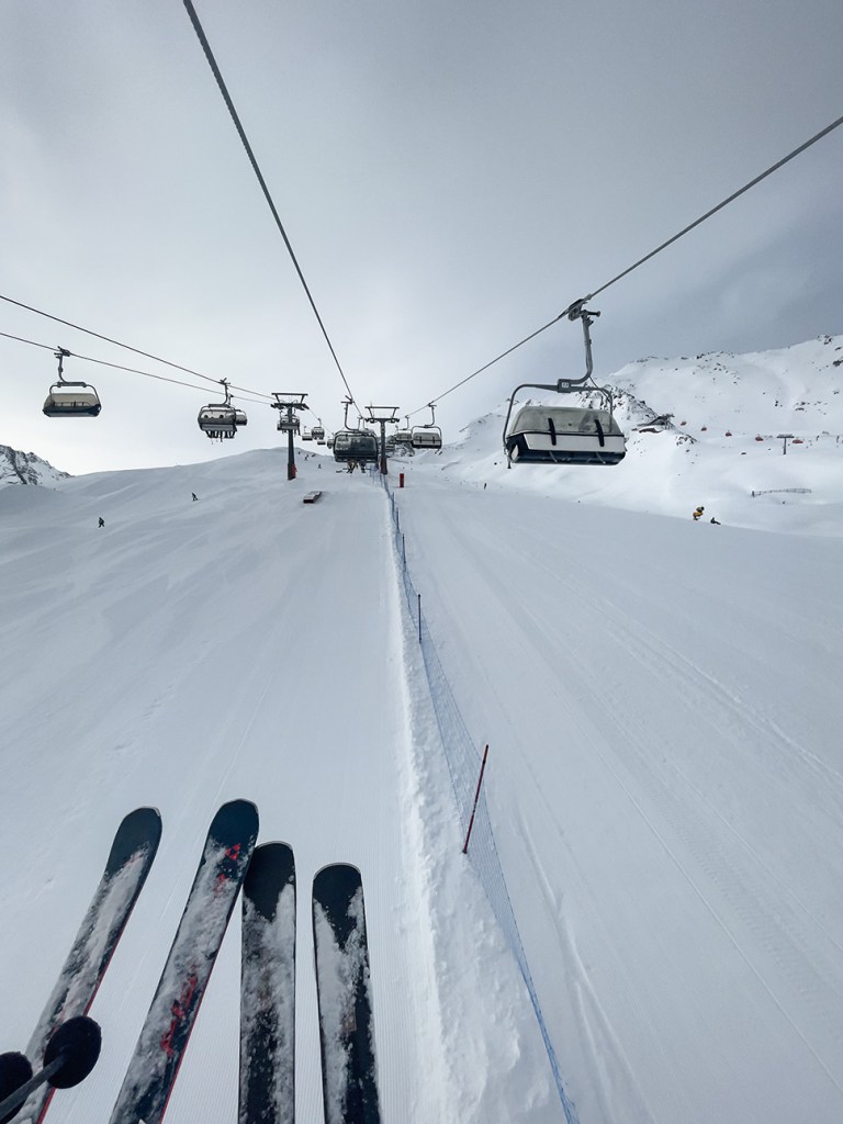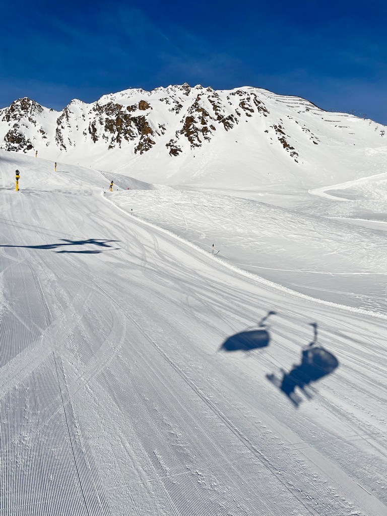 Najważniejszym jednak powodem, dla którego przyjechaliśmy do Sölden to oczywiście NARTY. I choć austriackie stoki nie są tak ciepłe jak te włoskie, to mamy sentyment do tego miejsca. Wysoko położone stoki dają niesamowite wrażenia widokowe. Siedząc wysoko na wyciągu, słysząc jedynie ciszę gór ma się uczucie jakby świat zatrzymał się na chwilę.