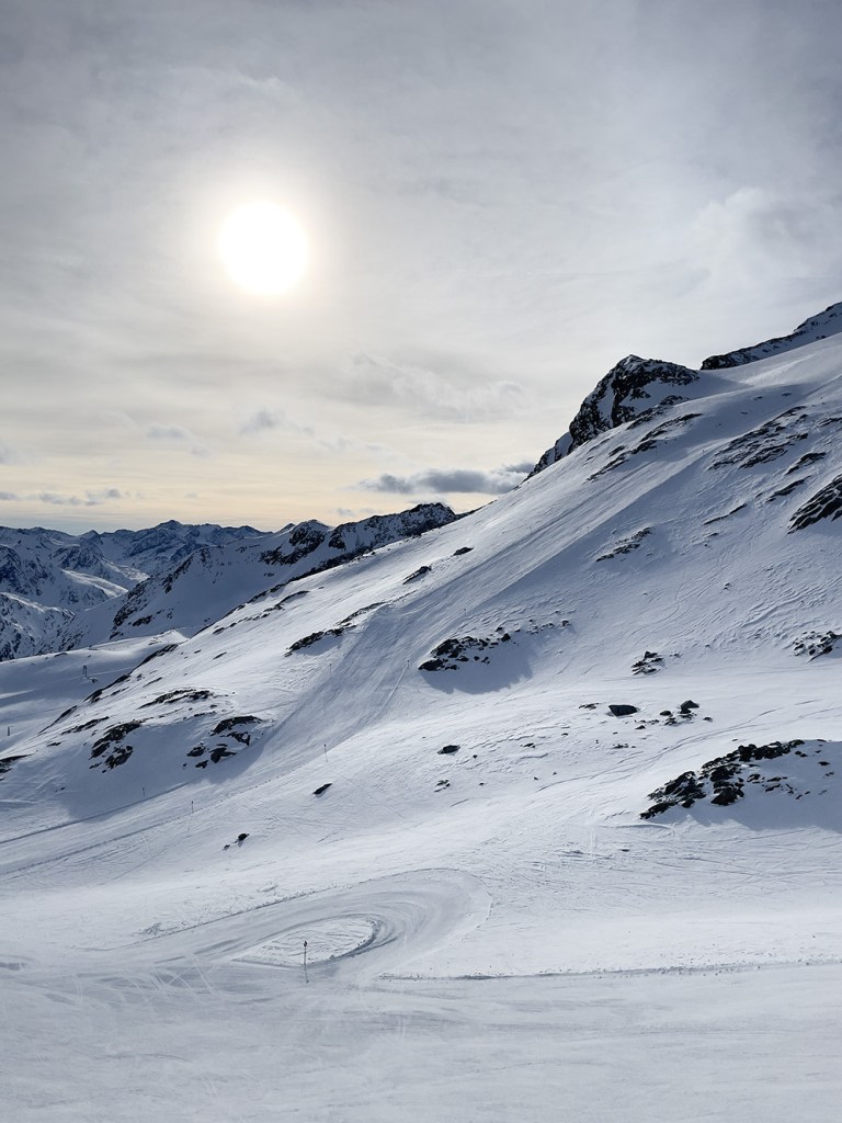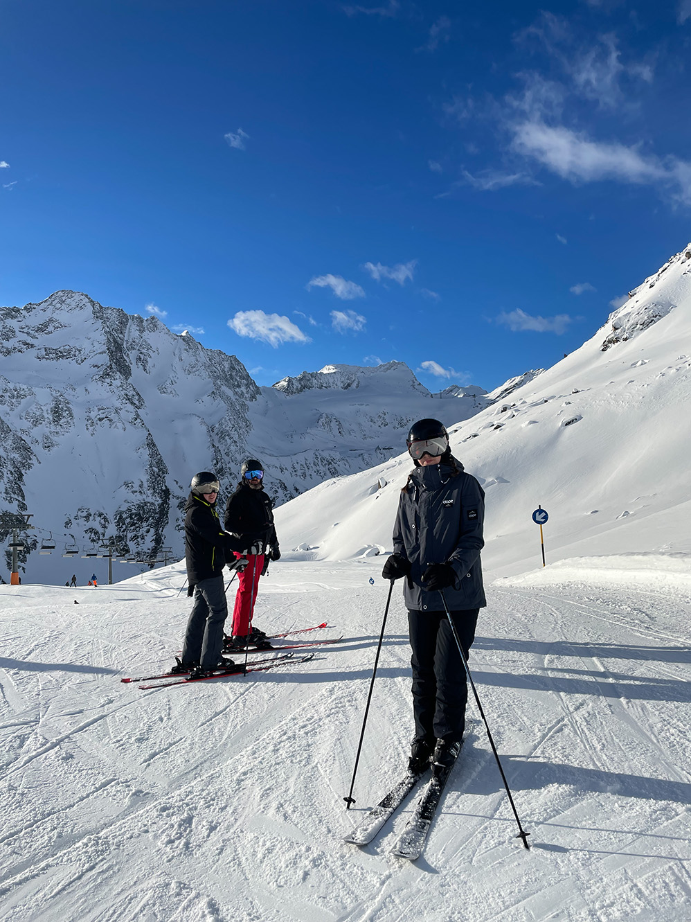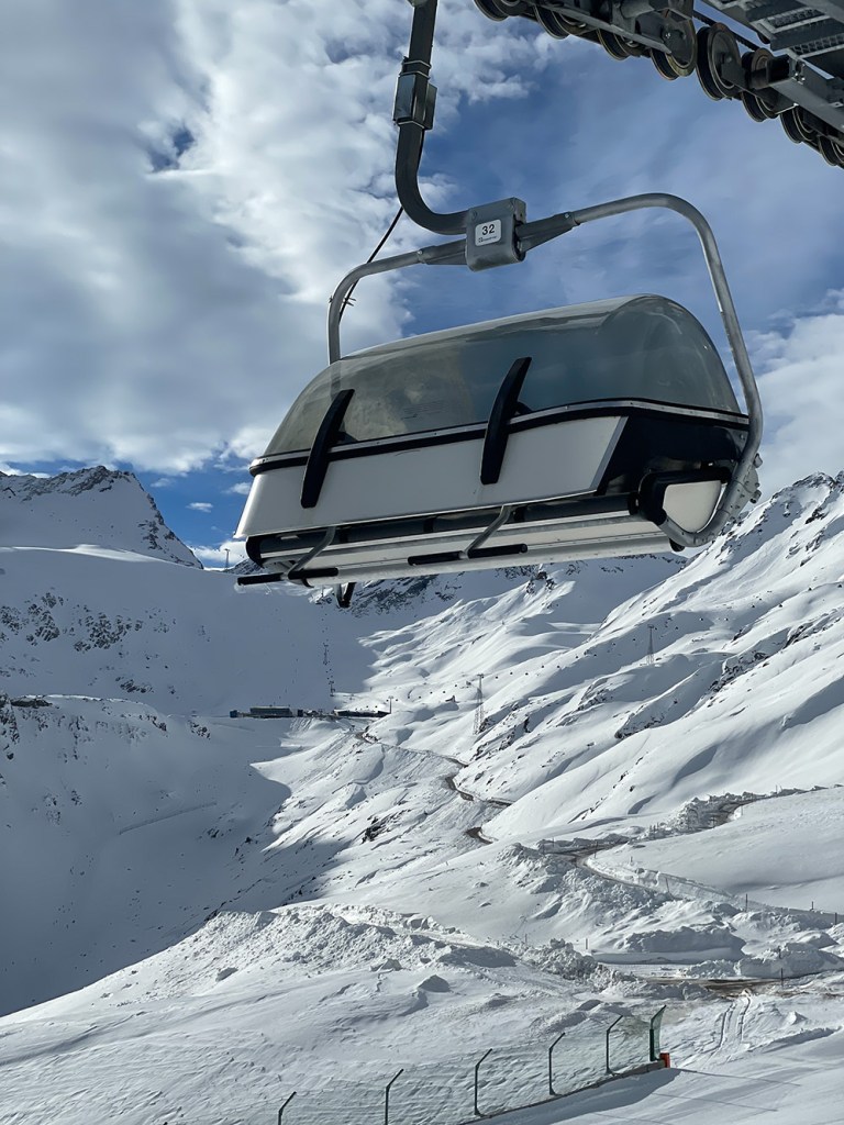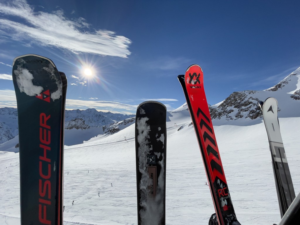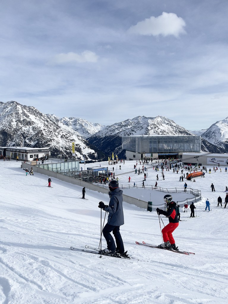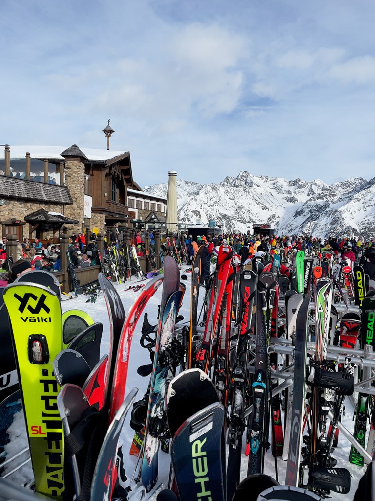 Najważniejszym jednak powodem, dla którego przyjechaliśmy do Sölden to oczywiście NARTY. I choć austriackie stoki nie są tak ciepłe jak te włoskie, to mamy sentyment do tego miejsca. Wysoko położone stoki dają niesamowite wrażenia widokowe. Siedząc wysoko na wyciągu, słysząc jedynie ciszę gór ma się uczucie jakby świat zatrzymał się na chwilę.