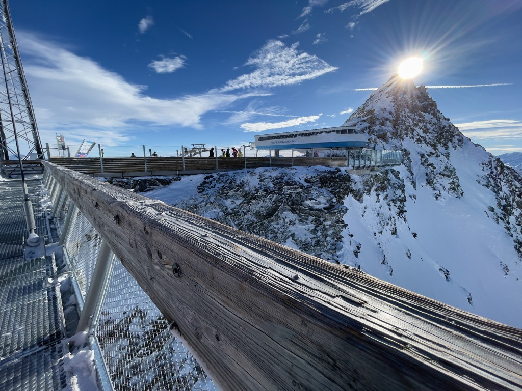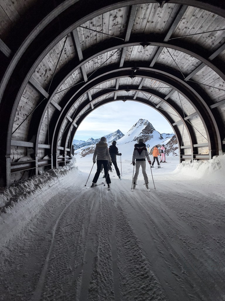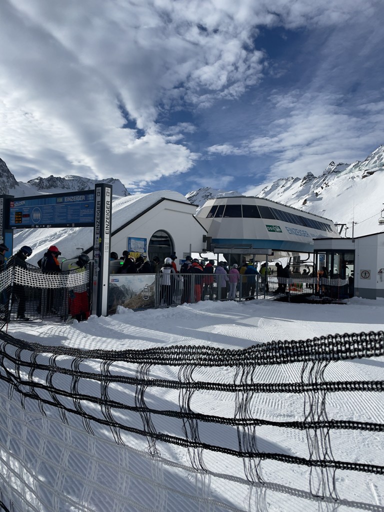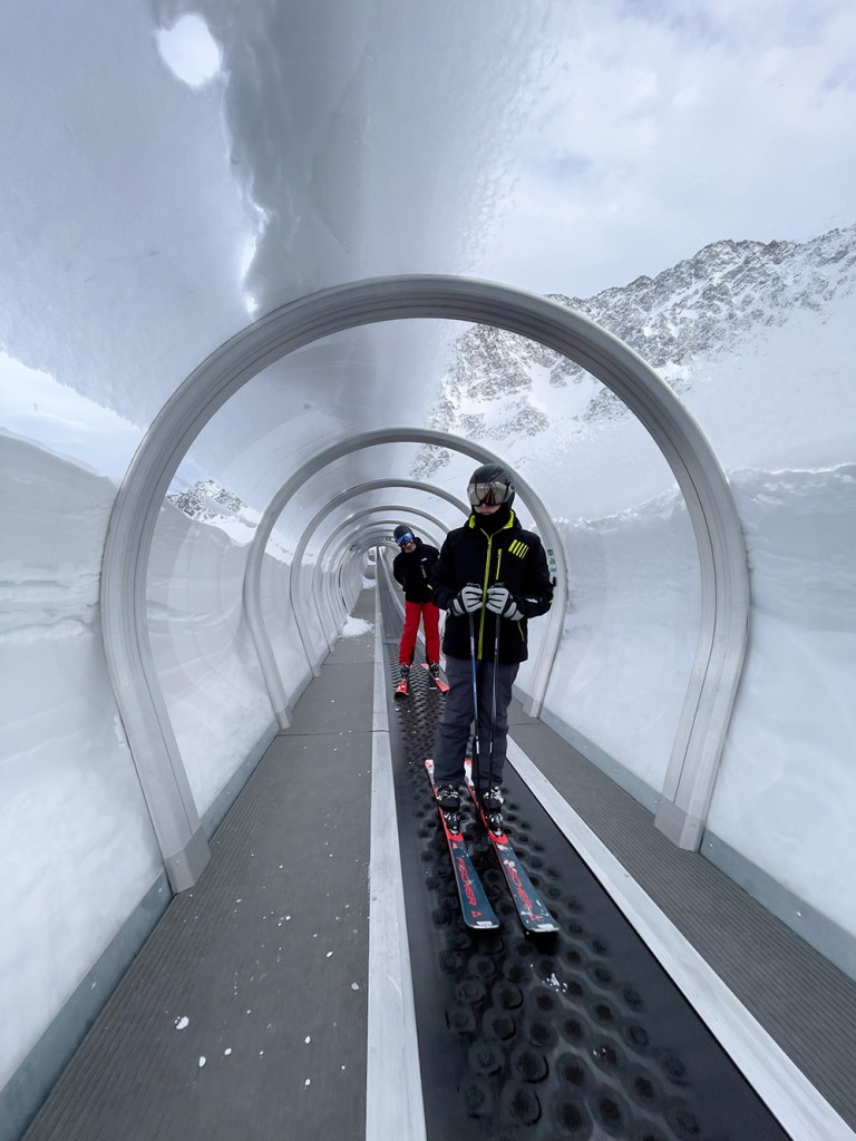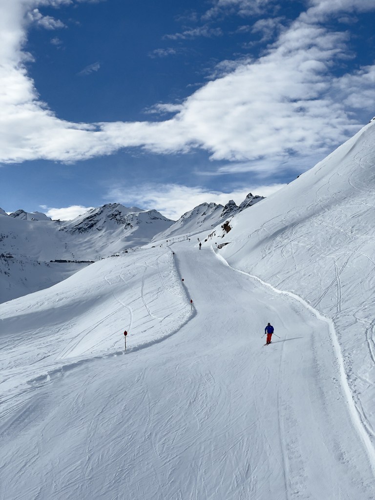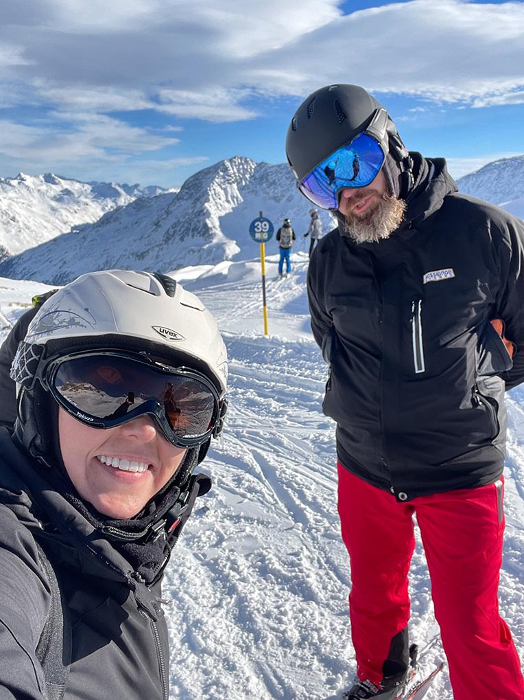 Najważniejszym jednak powodem, dla którego przyjechaliśmy do Sölden to oczywiście NARTY. I choć austriackie stoki nie są tak ciepłe jak te włoskie, to mamy sentyment do tego miejsca. Wysoko położone stoki dają niesamowite wrażenia widokowe. Siedząc wysoko na wyciągu, słysząc jedynie ciszę gór ma się uczucie jakby świat zatrzymał się na chwilę.