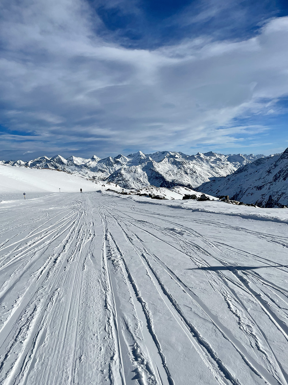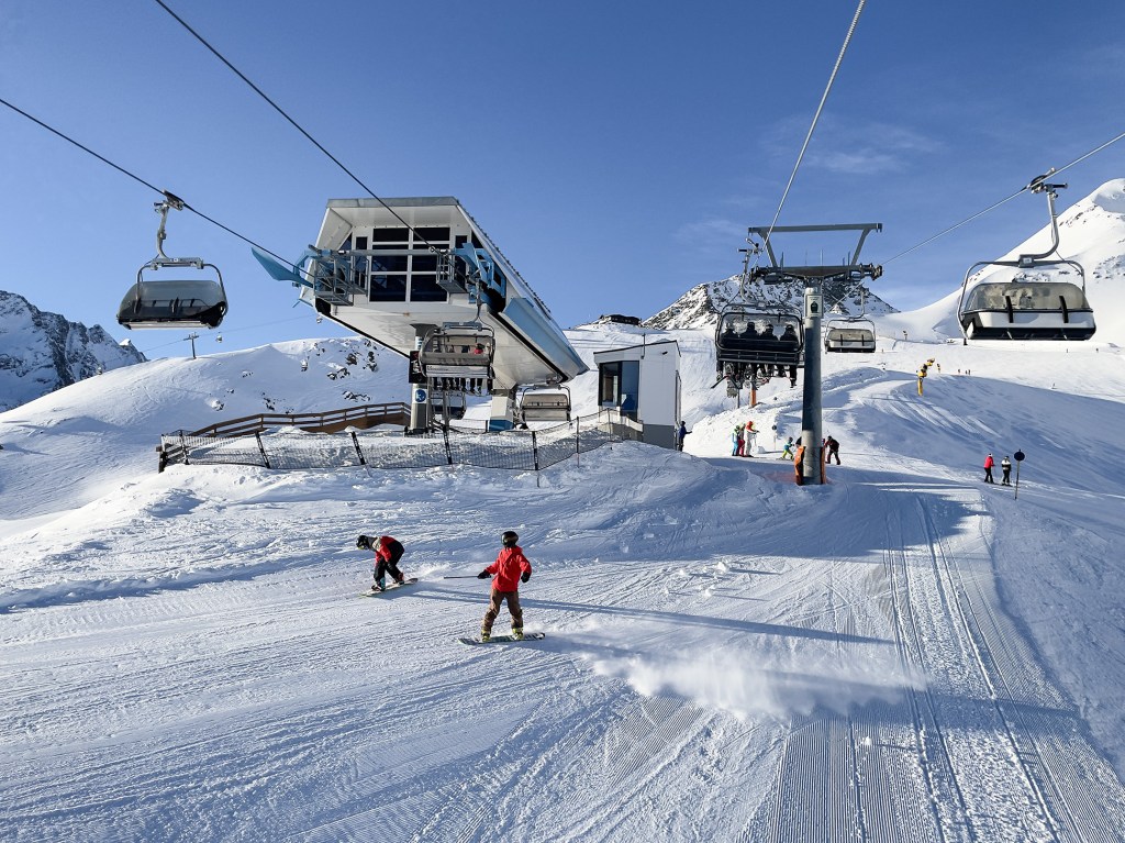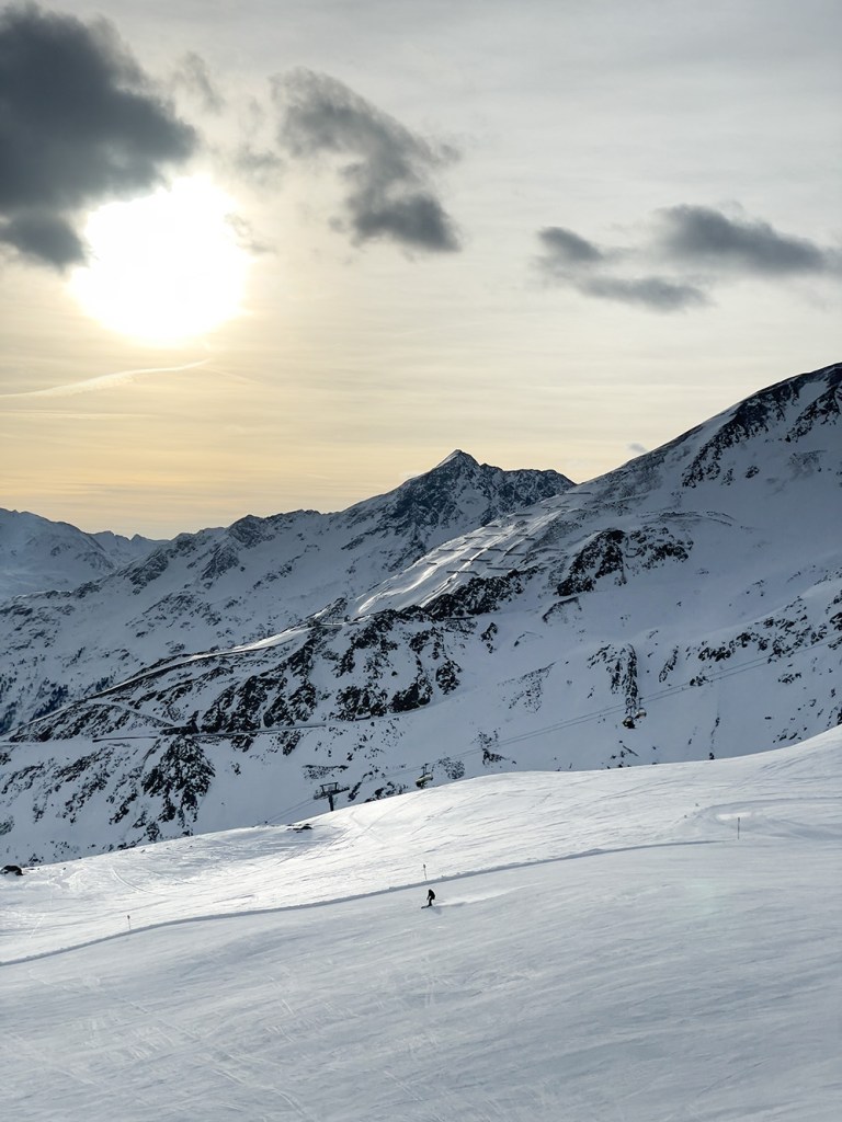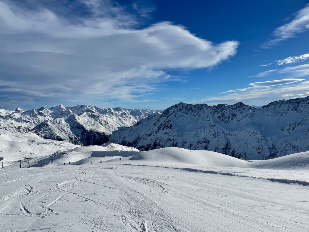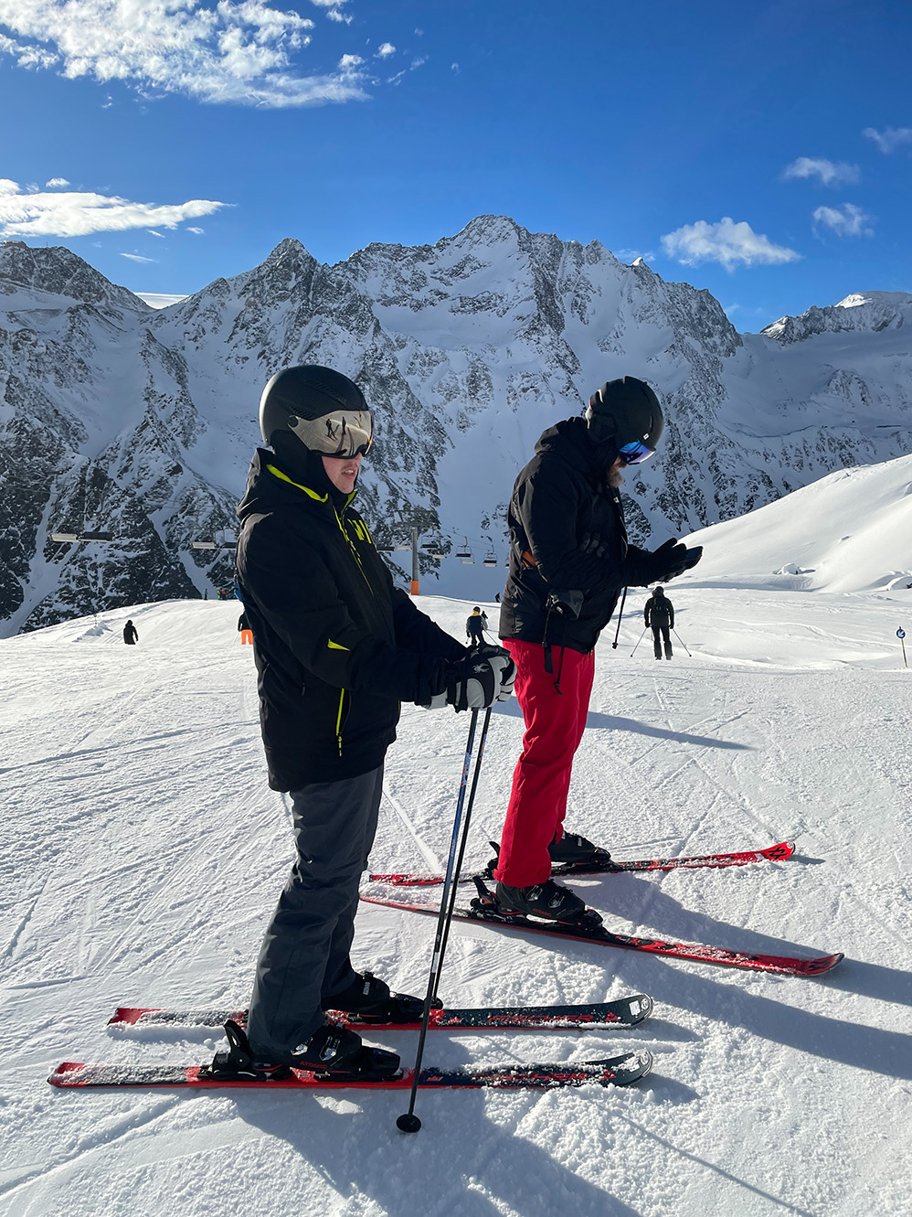Najważniejszym jednak powodem, dla którego przyjechaliśmy do Sölden to oczywiście NARTY. I choć austriackie stoki nie są tak ciepłe jak te włoskie, to mamy sentyment do tego miejsca. Wysoko położone stoki dają niesamowite wrażenia widokowe. Siedząc wysoko na wyciągu, słysząc jedynie ciszę gór ma się uczucie jakby świat zatrzymał się na chwilę.