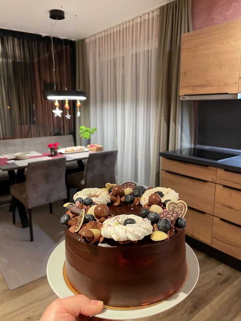 Zaraz po przyjeździe na miejsce czekała mnie niespodzianka! Właścicielka wiedząc, że w dniu przyjazdu obchodzę urodziny specjalnie dla mnie upiekła tort! Pierwszy raz coś takiego nam się przytrafiło. Jak się później okazało różnego rodzaju wypieki czekały nas też w kolejne dni. Na przykład ogromna orzechowo – migdałowa chałka i babeczki… niby drobiazg, ale bardzo nam było miło, że byliśmy tak zaopiekowani.