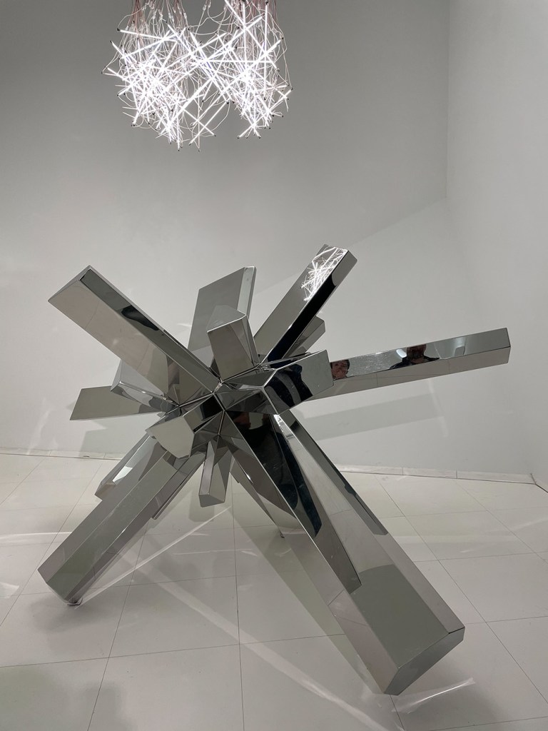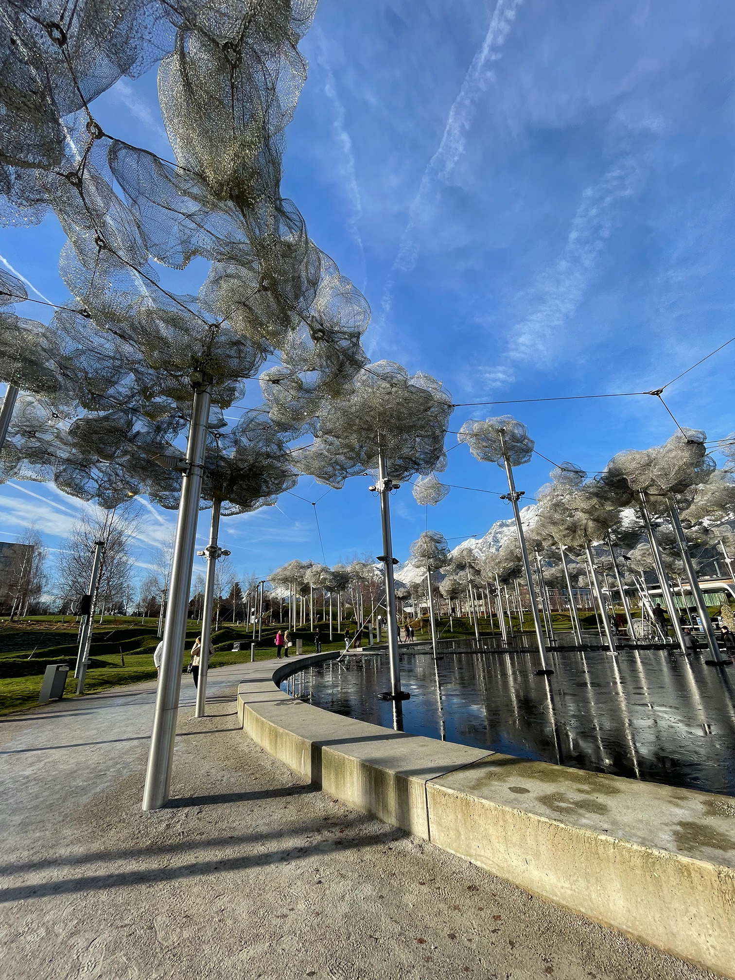 Przed muzeum urządzono ogród pokryty diamentową siatką. Pewnie wieczorny widok zapalonych latarni w połączeniu z tymi mieniącymi się szkiełkami musi być fantastyczny, ale niestety byliśmy w muzeum w ciągu dnia i nie mogliśmy tego zobaczyć.