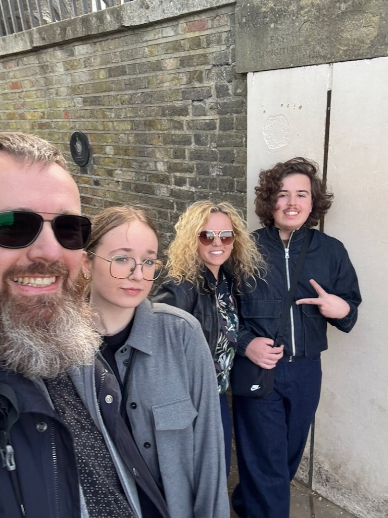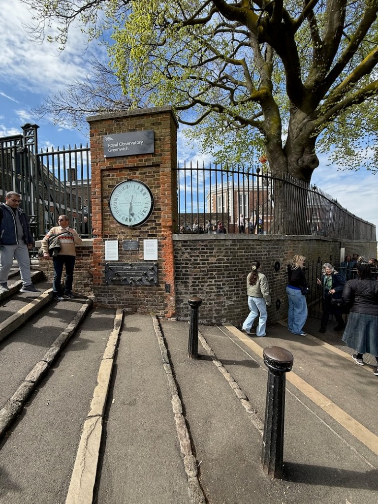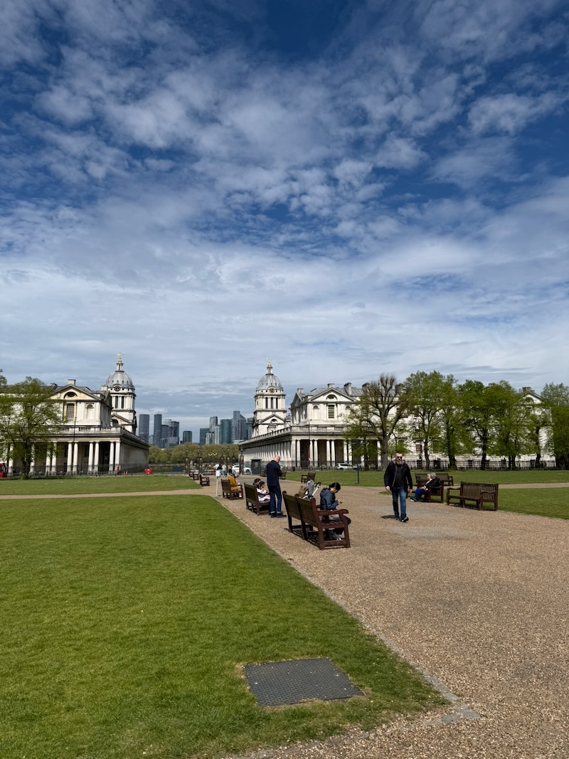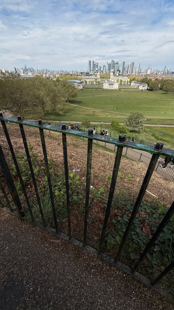 Od bram do południka trzeba kawałeczek dojść pieszo pod niewielkie wzniesienie, z którego roztacza się widok na londyńskie wieżowce i okolicę.