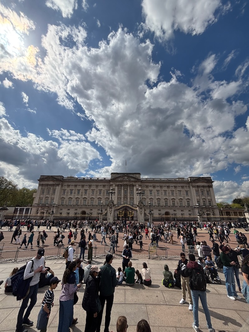 Pałac Buckingham Palace jest oficjalną rezydencją brytyjskiej rodziny królewskiej. Pałac znajduje się w samym sercu miasta, niedaleko parku St James’s Park, który jest idealnym miejscem na spacer. Budowla pełni nie tylko funkcję mieszkalną, ale także reprezentacyjną, ponieważ odbywają się tam ważne uroczystości państwowe. Pałac ma aż 775 pomieszczeń, w tym liczne sale balowe, apartamenty oraz biura. Przed pałacem znajduje się słynny pomnik Victoria Memorial, poświęcony królowej Victorii. Jedną z największych atrakcji dla turystów jest uroczysta zmiana warty, która przyciąga codziennie tłumy odwiedzających. Ceremonia ta jest symbolem brytyjskiej tradycji i precyzji. My wartę ominęliśmy. Jeśli nad pałacem powiewa królewska flaga, oznacza to, że aktualny monarcha przebywa w rezydencji.