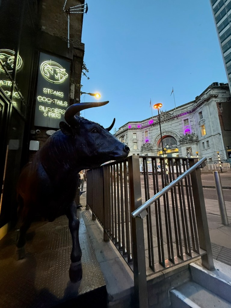 Nie mogliśmy też ominąć okazji, żeby spróbować jak smakuje steak w Black&Blue Steak House . Ta restauracja to popularna steakhouse’owa restauracja. Dobre miejsce, jeśli chcesz spróbować steaka w bardziej przystępnej cenie niż w luksusowych londyńskich steakhouse’ach, a jednocześnie poczuć klimat kulinarnego Londynu bez nadmiernego formalizmu.