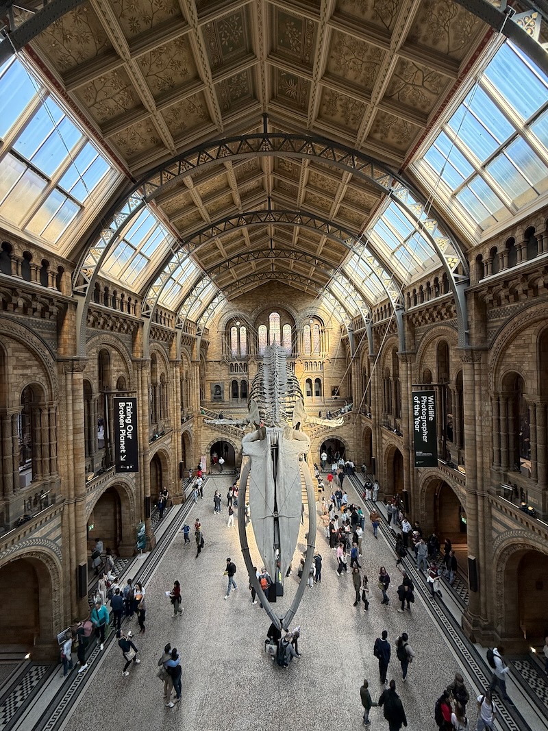 Natural History Museum, położone w imponującym neoromańskim budynku w dzielnicy South Kensington. Muzeum przyciąga miliony odwiedzających rocznie dzięki wyjątkowej kolekcji eksponatów związanych z naturą, od prehistorycznych dinozaurów po minerały i rzadkie okazy zwierząt. Na szczególną uwagę zasługuje ogromny szkielet diplodoka, który wita gości w głównym hallu jest to jedno z najbardziej rozpoznawalnych zdjęć z Londynu. Muzeum oferuje interaktywne wystawy, które pozwalają zarówno dzieciom, jak i dorosłym zgłębiać tajniki ewolucji, biologii i geologii. Warto poświęcić czas na galerię motyli i owadów, gdzie można zobaczyć setki barwnych okazów z całego świata. Dla miłośników kosmosu przygotowano także ekspozycje dotyczące planet i meteorytów. Jedną z ciekawostek jest to, że wejście do muzeum jest bezpłatne, co czyni je idealnym punktem do odwiedzenia nawet przy ograniczonym budżecie. W muzeum znajdują się także kawiarnie i sklepy z pamiątkami, które pozwalają odpocząć i zabrać kawałek historii do domu. Co roku odbywają się tu także specjalne wystawy czasowe, które prezentują najnowsze odkrycia naukowe i fascynujące historie z całego świata. Jeśli planujesz wizytę, warto przyjść rano, bo zwiedzanie całego muzeum może zająć kilka godzin. Przy okazji naszej wizyty udało się nam odwiedzić wystawę fotografii.
