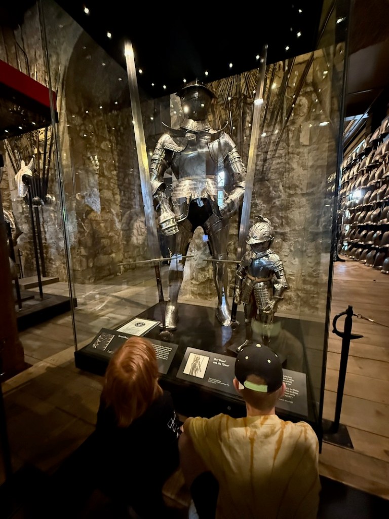Już sama sylwetka zamku, z masywnymi murami i charakterystycznymi wieżami, robi wrażenie i sprawia, że od razu czujesz klimat średniowiecznego Londynu. W środku czekają prawdziwe skarby … dosłownie! Najsłynniejsze z nich to korony królewskie, błyszczące diamenty i klejnoty, które przez wieki były świadkami najważniejszych wydarzeń w historii Wielkiej Brytanii. Spacer po dziedzińcach zamku to jak podróż w czasie. Tower of London nie jest tylko zamkiem, ale też pełnym życia muzeum, w którym historia staje się namacalna, możesz zobaczyć średniowieczne zbroje, broń i tajemnicze cele więzienne.